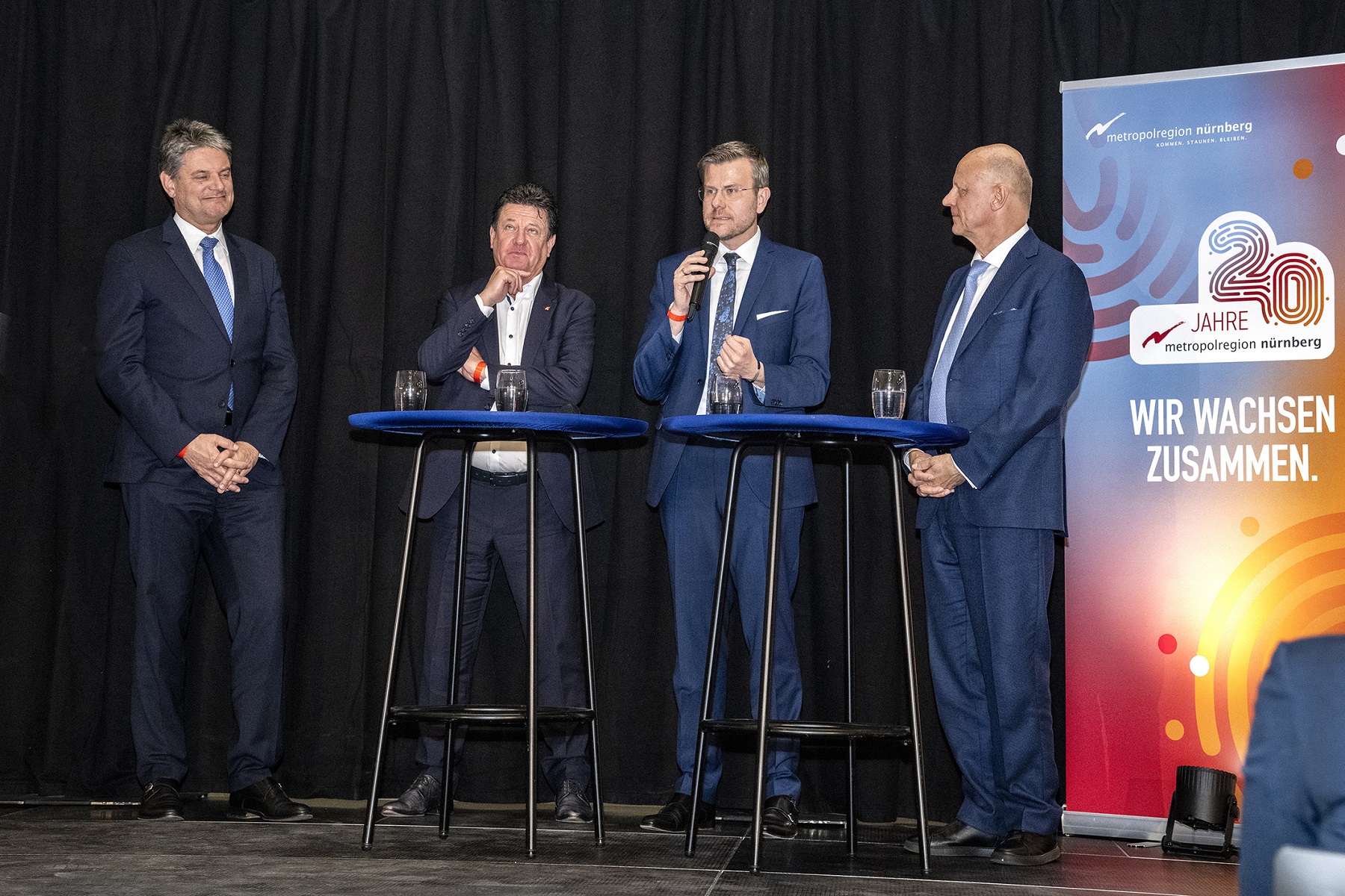 Mit rund 200 Gästen feierte die Metropolregion in der IHK Nürnberg für Mittelfranken ihr 20-jähriges Jubiläum. In Chancengesprächen – moderiert von Katrin Müller-Hohenstein – ging es um die technologischen Kompetenzen, die Attraktivität und die Innovationskraft der Region. „Wir wollen die bevorzugte Heimat für talentierte und engagierte Menschen aus aller Welt sein. Gemeinsam schaffen wir die Heimat für Kreative. Mit dieser Mission sind wir 2005 gestartet. Schon allein die Anerkennung als Metropolregion war ein kraftvolles Statement zu den Stärken und Entwicklungspotenzialen unserer nordbayerischen Region. Es entwickelt sich eine neue Aufbruchsstimmung. Die Wirtschaftsleistung der rund 2 Millionen Beschäftigten in der Metropolregion ist in den letzten zwanzig Jahren stetig gewachsen, auf aktuell 167 Milliarden Euro. Eine zentrale Herausforderung bleibt die Fachkräftesicherung. Dazu müssen wir weiterhin auf die Stärken unserer Region aufmerksam machen und den Zuzug durch Willkommenskultur erleichtern“, sagt Prof. Klaus L. Wübbenhorst, Wirtschaftsvorsitzender der Metropolregion.