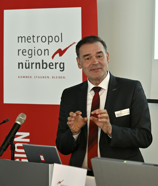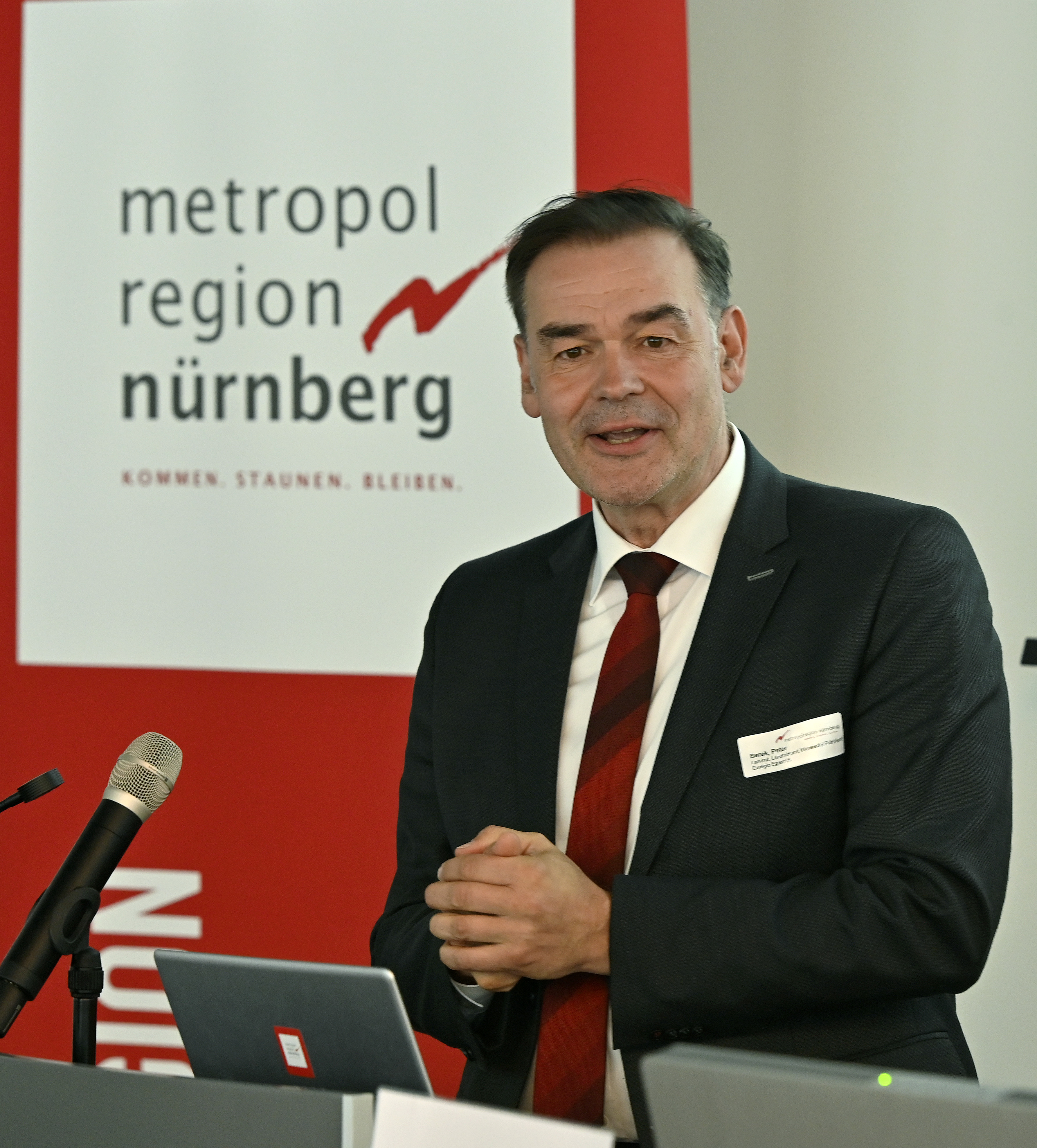 „Das Zukunftsbild, das wir im Projekt transform_EMN für die regionale Automotive Branche entwickeln, soll als Kompass für die Regionalentwicklung und gemeinsames Handlungsleitbild für die gesamte Metropolregion Nürnberg dienen. Denn die Transformation dieser wirtschaftlich überaus wichtigen Branche sowie die Einbeziehung aller direkt und indirekt Beteiligten gelingt nur gemeinsam und mit einem klaren Zielbild vor Augen“, sagt Markus Lötzsch, Hauptgeschäftsführer der IHK Nürnberg für Mittelfranken und Fachlicher Sprecher des Forums Wirt- schaft und Infrastruktur der Metropolregion. Markus Lötzsch wurde in der Sitzung außerdem als neuer stellvertretender Wirtschaftsvorsitzender bestätigt.