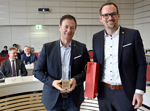 Ebenfalls auf der Agenda der Ratssitzung stand eine Auszeichnung für Thomas Thumann. Für seine Arbeit als Politischer Sprecher des Forums Klimaschutz und insbesondere für sein großes Engagement in der Fairen Metropolregion erhielt der langjährige Oberbürgermeister von Neumarkt i.d. Oberpfalz den Metropolregions-Award. Der langjährige 2. stellvertretende Ratsvorsitzende engagiert sich seit 2010 für die Etablierung und Weiterentwicklung des Lenkungskreises zum Forum Klimaschutz und nachhaltige Entwicklung.