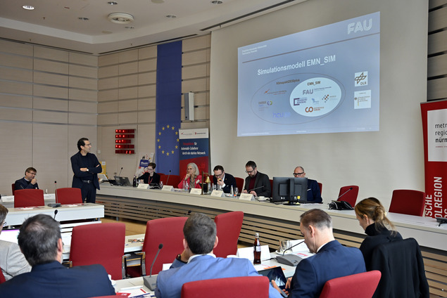 Ein innovatives Instrument, um die nötigen Investitionen in die Energie-Infrastruktur in einem sinnvollen Rahmen halten zu können, wird derzeit im Rahmen des Projekts Klimapakt2030plus entwickelt. Dabei ist intelligente Planung nötiger denn je – dies illustrierte Prof. Reinhard German von der Friedrich-Alexander-Universität Erlangen-Nürnberg in seinem Vortrag vor den Ratsmitgliedern. In dem Projekt entwickelt er zusammen mit Wissenschaftler:innen der FAU, der Hochschule Coburg und der Julius-Maximilians-Universität Würzburg ein Simulationsmodell der Metropolregion, kurz: EMN_SIM.