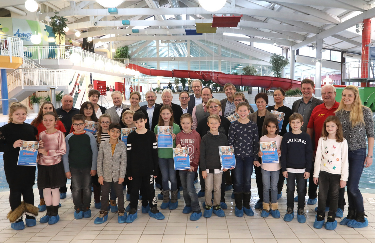 Diese drei Grundschulen waren im Bereich der „weiteren Schwimmabzeichen“ Spitzenreiter in ihrer Kategorie und erhielten als Dank für ihr außerordentliches Engagement je 200 Euro: