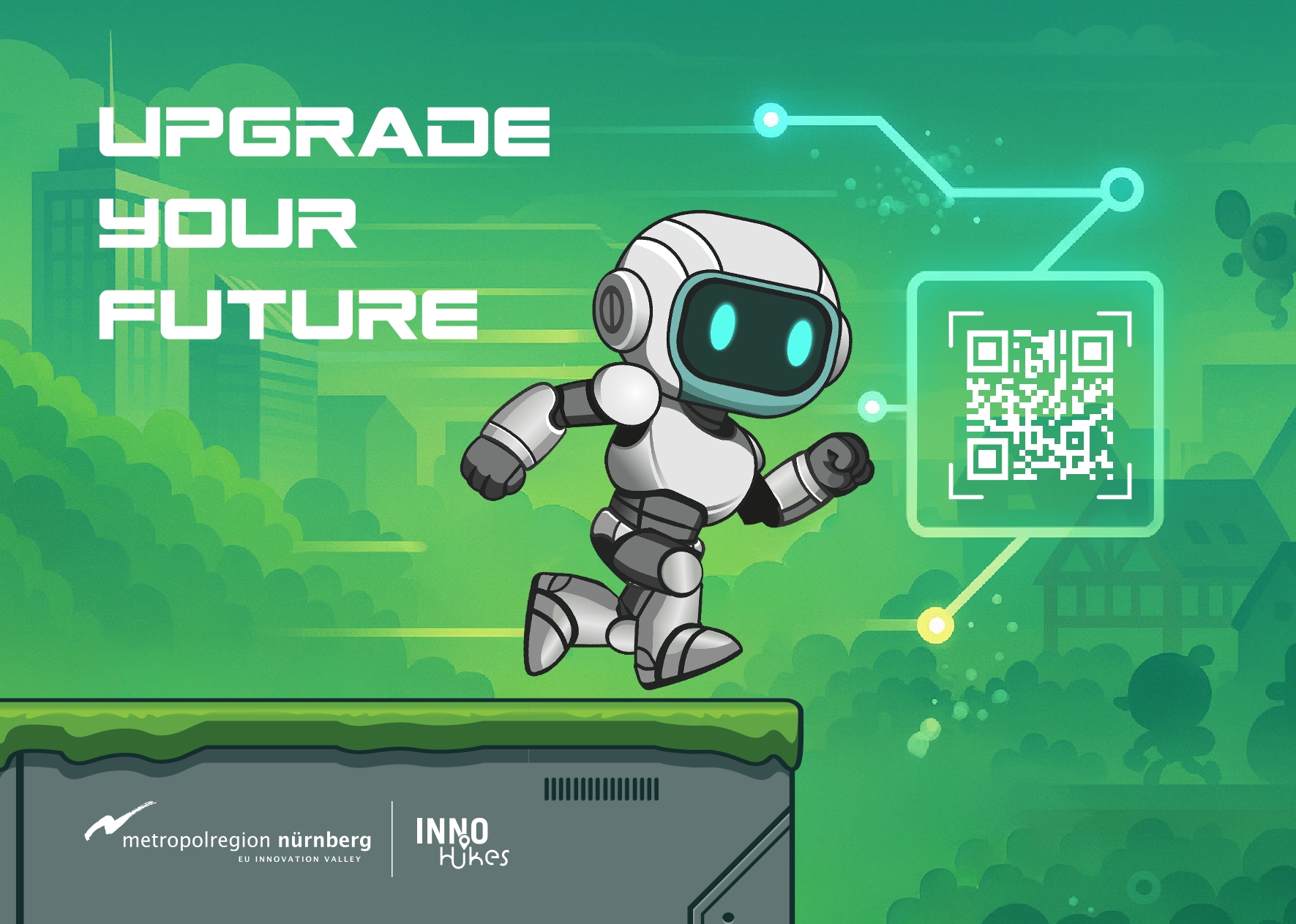 In der Metropolregion Nürnberg trifft Hightech auf Heimatgefühl. Dieses Zusammenspiel verbindet die neue gestaltete InnoHikes-App, die Nutzerinnen und Nutzer auf eine virtuelle Entdeckungsreise durch die Innovationslandschaft der Region schickt: Start-ups, Hochschulen und Forschungseinrichtungen werden zu spielbaren Stationen, Missionen führen von den grünen Tälern der Fränkischen Schweiz bis in die gläsernen Türme Nürnbergs.