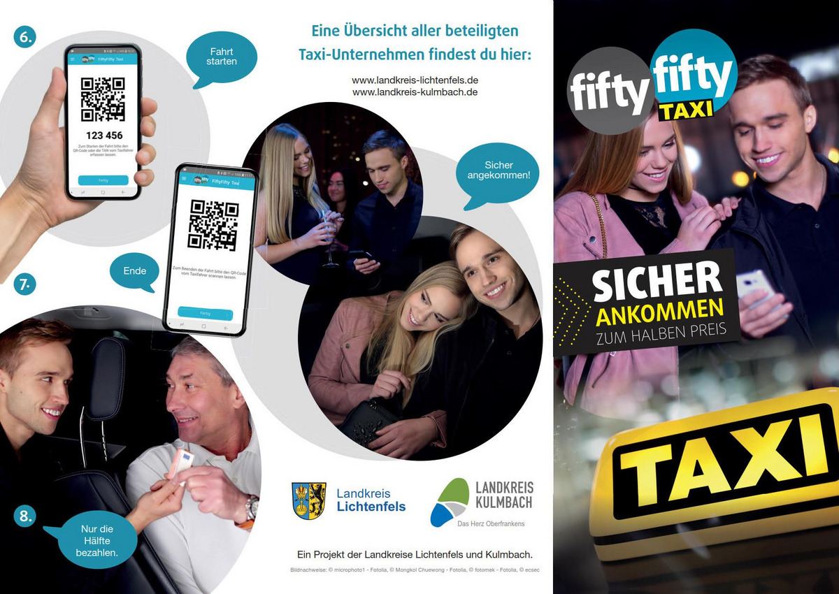 Am 1. Juli 2018 startet das Pilotprojekt FiftyFifty Taxi App in den Landkreisen Lichtenfels und Kulmbach. Jugendliche melden sich in einer Smartphone-App an und müssen nachts nur die Hälfte für eine Taxi-Fahrt zahlen. Die Aktion soll eine Alternative zu Diskobussen sein und Sicherheit für Jugendliche bieten.