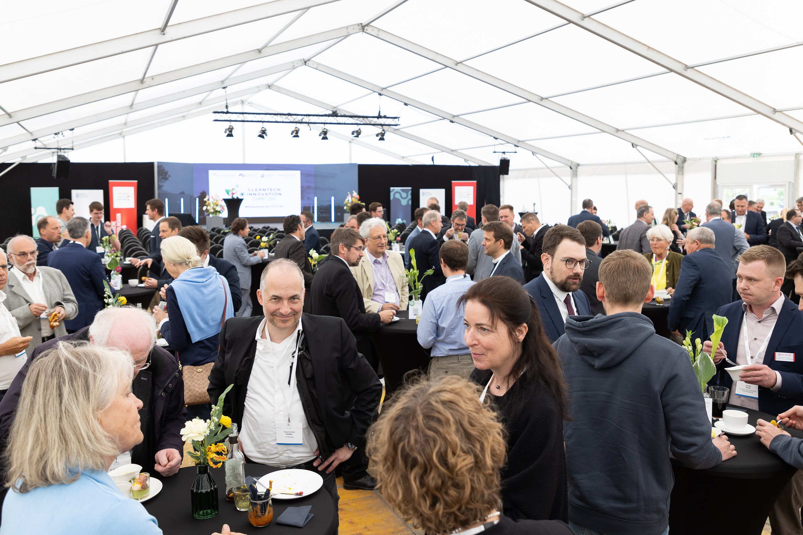In zwei spannenden Podiumsdiskussionen warfen Expertinnen und Experten aus der Praxis einen Blick in die Zukunft. „Cleantech for sustainable societies - What's next?“ – diese Frage erörterten Karsten Peddinghaus, Head of Advanced Sustainability & Funding der BMW AG, Professor Dr. Stefan Niessen, Head of Technology Field der Siemens AG und Dr. Stefan Schmitz, Technischer Werkleiter der Robert Bosch GmbH, Werk Bamberg. Wie Künstliche Intelligenz und Cleantech die Zukunft gestalten werden, diskutierten Philipp Schalla von IBM und Clemens Dereschkewitz von der Glen Dimplex Deutschland GmbH, gemeinsam mit Dr. Rudolf Felix der PSI FLS Fuzzy Logik & Neuro Systeme GmbH und Jonas Szalanczi, dem Geschäftsführer der nAIxt Technologies GmbH.