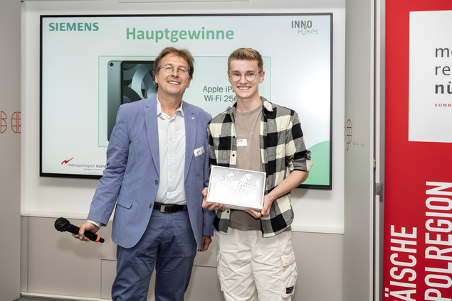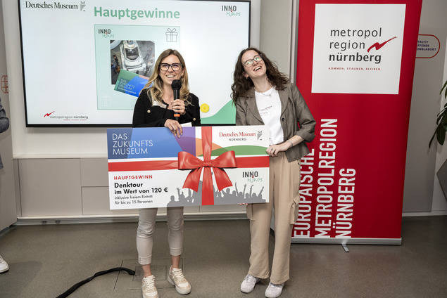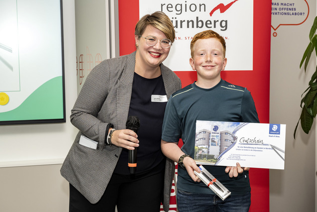 Die weiteren Preise, unter anderem ein Kinopaket des Sommernachtfilmfestivals, eine Kranfahrt bei Tadano in Lauf, eine Exklusivführung der TSB Magnetschwebebahn-Technologie bei Max Bögl in Sengenthal, Einblicke in den Reinraum beim Fraunhofer IISB sowie eine Denktour im Zukunftsmuseum, wurden den Gewinnerinnen und Gewinnern während des Abschlussevents im Namen der stiftenden Unternehmen übergeben.