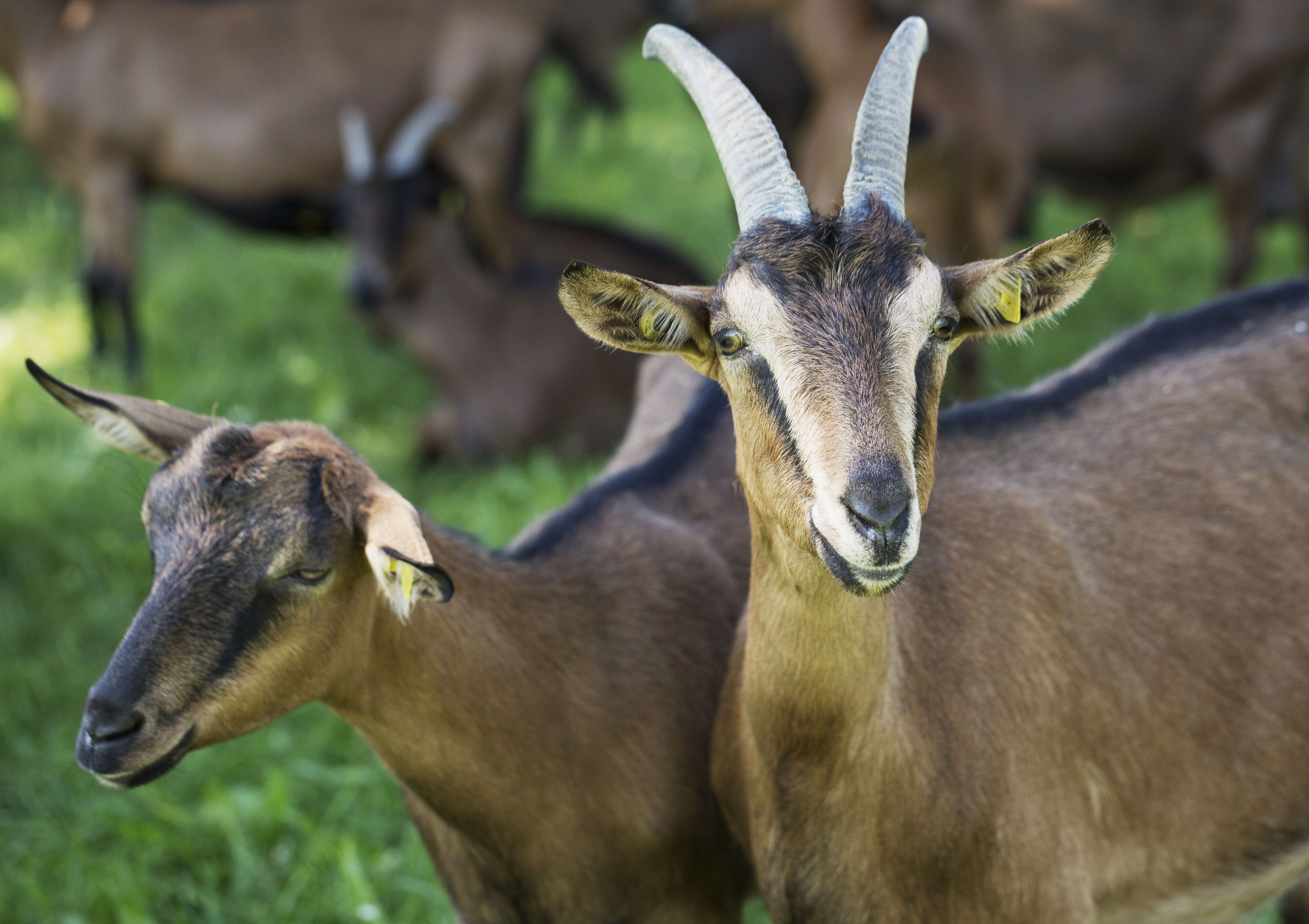 Auf der Bio-Regio-Tour erfahren Teilnehmerinnen und Teilnehmer Wissenswertes über Ziegen. Foto: Öko-Modelregion / Freistaat Bayern / Daniel Delang