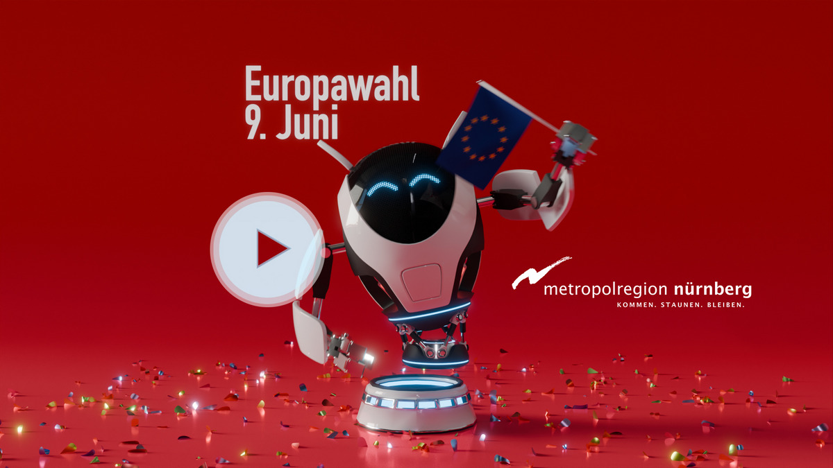 Nutzen Sie das Europawahl-Video der Europäischen Metropolregion Nürnberg, um auf Ihren Online-Kanälen an die Europawahl am 9. Juni zu erinnern.