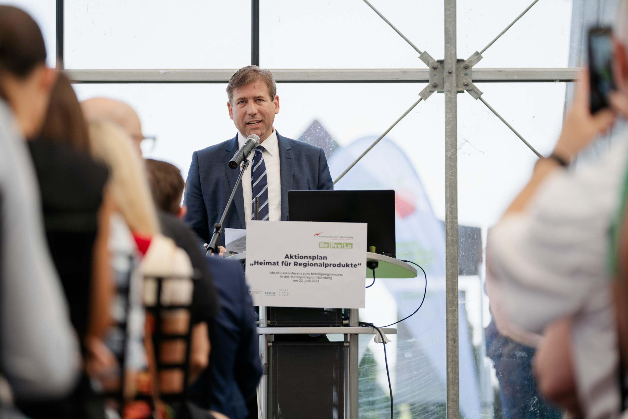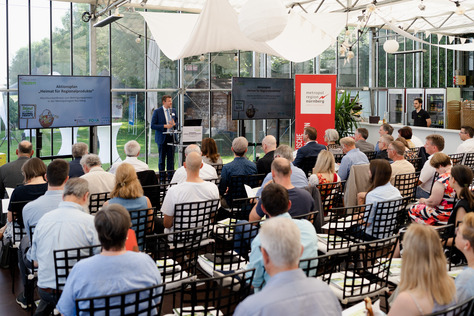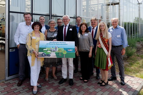 Wissenschaft, Politik und Praxis: Sie alle brachten ihre Erfahrungen bei der Erarbeitung des Aktionsplans „Heimat für Regionalprodukte“ ein. Am 22. Juni 2023 wurde der Aktionsplan im Gwächshaus in Nürnberger Knoblauchsland öffentlich vorgestellt. Neben Akteuren aus den Kommunen und Landkreisen der Metropolregion waren mit Ministerialdirigent Ludwig Wanner, Abteilungsleiter des Bayerischen Staatsministeriums für Ernährung, Landwirtschaft und Forsten (StMELF) und Ministerialdirigent Robert Winkler aus dem Bayerischen Staatsministerium für Umwelt und Verbraucherschutz (StMUV) auch Vertreter des Freistaats Bayern bei der Veranstaltung dabei.