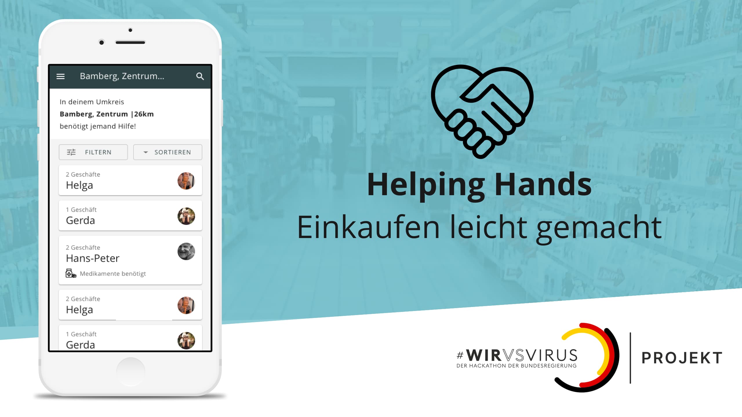 "Wir von Helping Hands entwickeln eine Einkaufszettel-Plattform (Web/App), die Hilfesuchende und Helfer in der Nähe schnell und kostenlos zusammenbringt. In den letzten Wochen haben wir unsere Beta-Version getestet und arbeiten momentan noch das Feedback der Nutzer ein, bevor wir in zirka zwei Wochen live gehen," erklärt der Scrum Master Marcel Binzenhöfer von Helping Hands. "Wir haben bereits Kontakt mit den Städten Bamberg, Würzburg und Coburg, mit denen wir als Pilotstädte starten wollen."