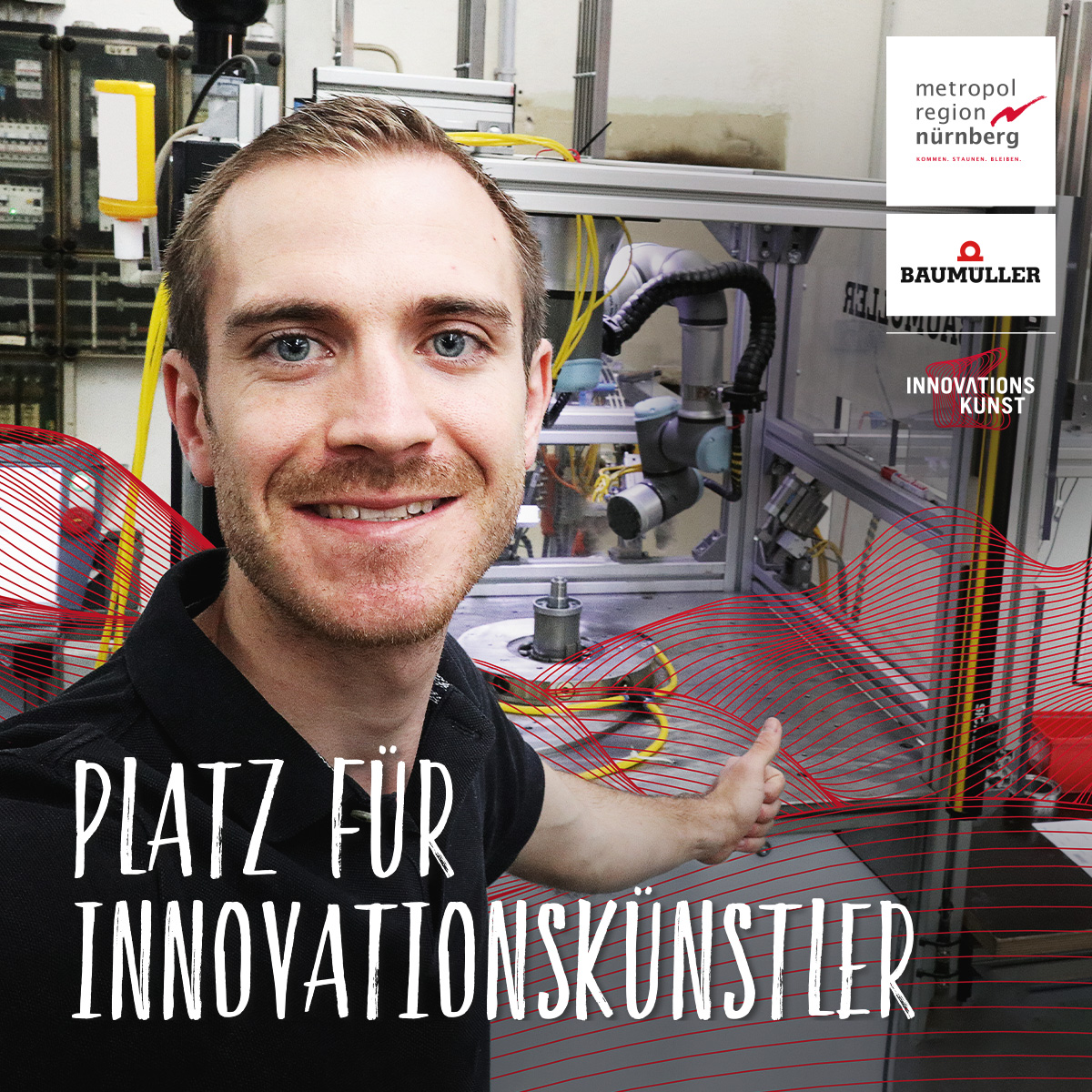 Felix Wieser denkt gern einige Schritte voraus: „Man kann immer was verbessern und einen Prozess optimieren. Das ist das Spannende an meinem Job.“ Der 30-jährige arbeitet als Prozessoptimierer bei der Baumüller Gruppe, dem führenden Hersteller elektrischer Antriebs- und Automatisierungsantriebe in der Metropolregion. Er ist der erste „Innovationskünstler“, der im Rahmen der neuen Serie „Platz für Innovationskünstler und –künstlerinnen“ vorgestellt wird. Die Serie ist Teil der Mitmachkampagne „Platz für“ der Metropolregion Nürnberg.