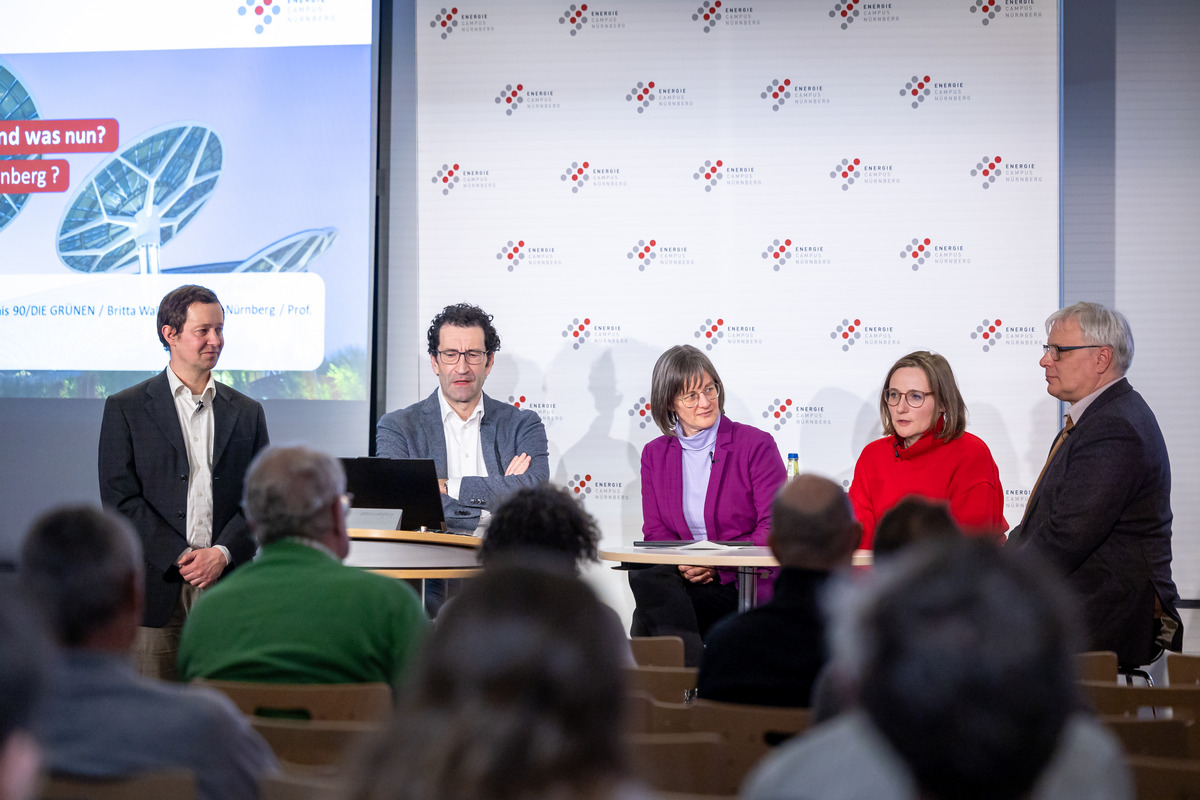 Die Diskussionsrunde am EnCN: Markus Rützel, Prof. Dr Reinhard German, Britta Walthelm, Lisa Badum, Prof. Dr. Jürgen Karl. Bild: Bianca Pircher