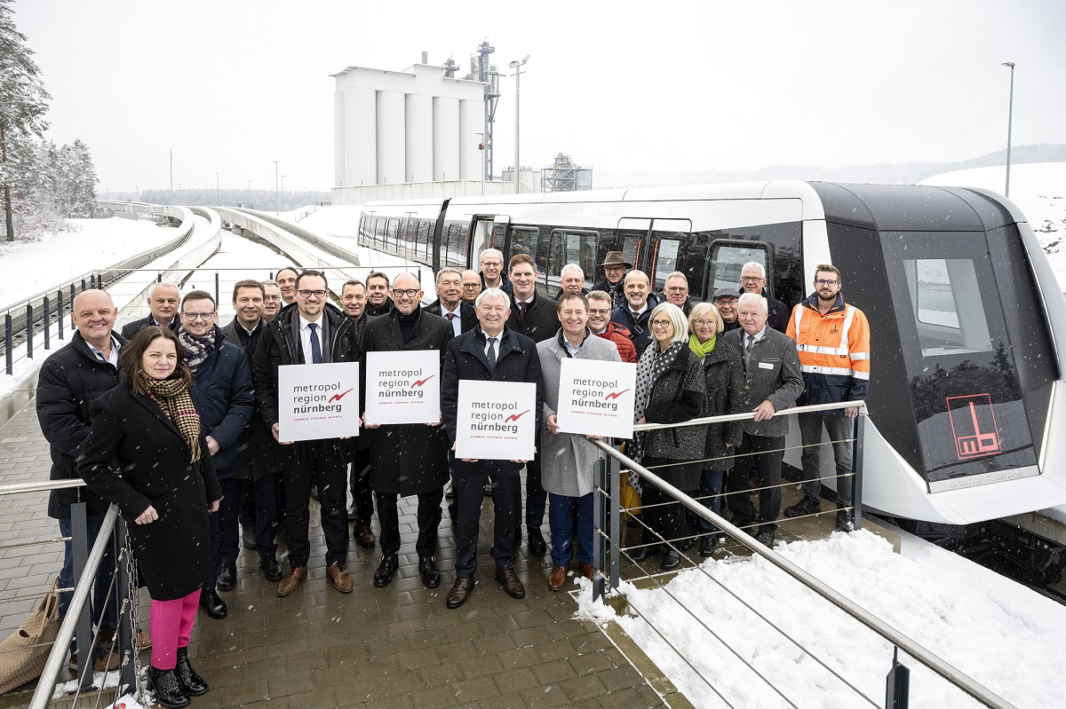 Von dem lautlos gleitenden und flächensparenden Transport System Bögl (TSB), einer Magnetschwebebahn, ließen sich die politischen Vertreter bei der 43. Ratssitzung der Metropolregion Nürnberg kürzlich vor Ort überzeugen. Die Vertreter der Wirtschaft der Metropolregion machten sich bereits im Sommer ein Bild. Nun wurde die Bahn vom Bayerischen Ministerpräsidenten Markus Söder vorgeschlagen als Verbindung zwischen Südklinikum, Messe und der neuen Technischen Universität Nürnberg, die zwischen U- und Straßenbahntrassen liegt.