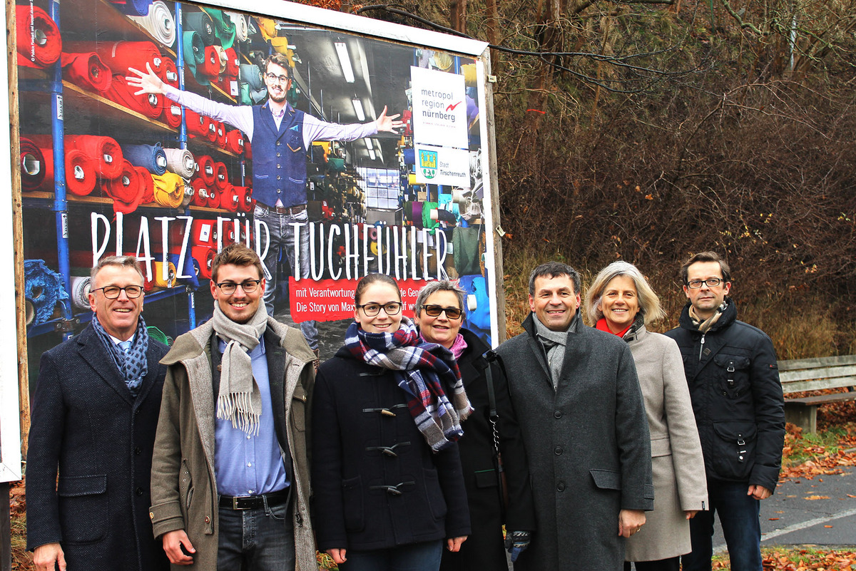 Traditionelles Handwerk bewahren und gleichzeitig das Unternehmen fit für die Zukunft machen: Maximilian Mehler präsentiert auf dem Plakat "Platz für Tuchfühler" der Metropolregion Nürnberg seine Vision der Tuchfabrik Mehler In Tirschenreuth. Ende November wurde das Motiv der Öffentlichkeit vorgestellt.