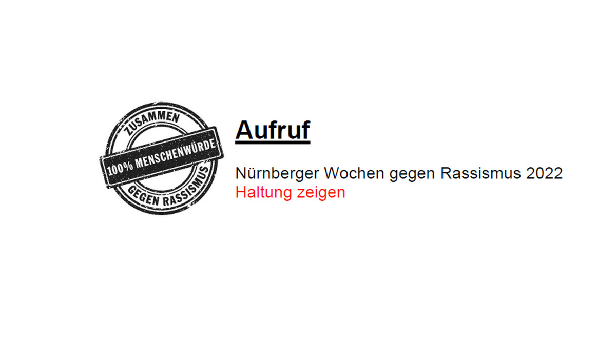Institutionen und Bürger sind aufgerufen, sich am Programm der Nürnberger Wochen gegen Rassismus vom 14. bis 27. März 2022 zu beteiligen. Das Motto der Wochen lautet „Haltung zeigen“!