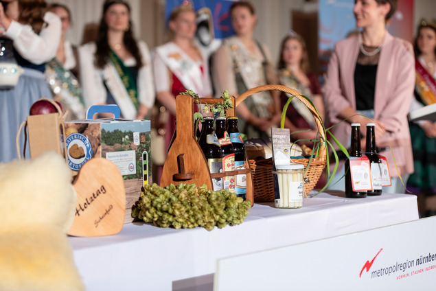 Exemplarisch vor Augen führten dies 19 Produkthoheiten, von der Altmühltaler Lammkönigin über die bayerische Bierkönigin bis zur Holzfee. Sie zeigten mit ihrer Fülle an regionalen Genüssen und Waren, was ihre Heimat ausmacht: Produkte höchster Güte, die in einer intakten, kleinteiligen Landwirtschaft und einer traditionsreichen Kulturlandschaft wachsen und für eine nachhaltige Ernährung sorgen. Mit diesem Schatz bewirbt sich die Metropolregion Nürnberg als erste Region Deutschlands um den Titel Welterbe Agrarkultur.