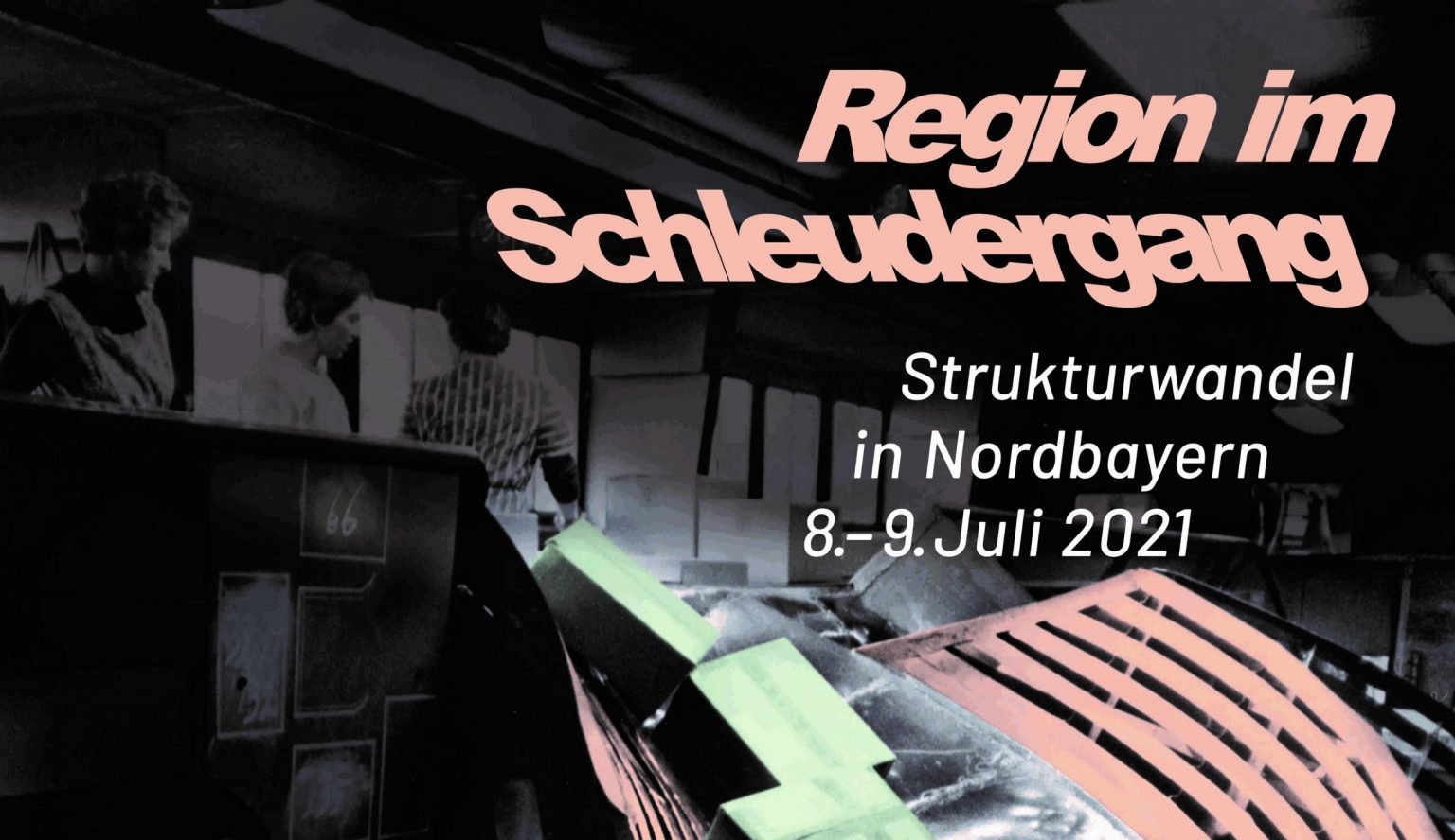 Die Tagung „Region im Schleudergang“ beleuchtet mit einer Reihe von Vorträgen die Veränderungen und Auswirkungen des Strukturwandels seit den 1970er Jahren im nordbayerischen Raum und lotet die Möglichkeiten der musealen Darstellung aus. In einer Podiumsdiskussion erörtern lokale Akteure Handlungsspielräume bei der Bewältigung des Strukturwandels. Die Tagung findet am Donnerstag, 8. Juli 2021, ab 14 Uhr rein digital über den Besprechungsdienst Zoom statt. Am Freitag, 9. Juli 2021, ab 9 Uhr kann eine eingeschränkte Personenzahl in der Kulturwerkstatt auf AEG, Fürther Straße 244d, vor Ort dabei sein, wobei weiterhin die Möglichkeit der digitalen Teilnahme besteht.