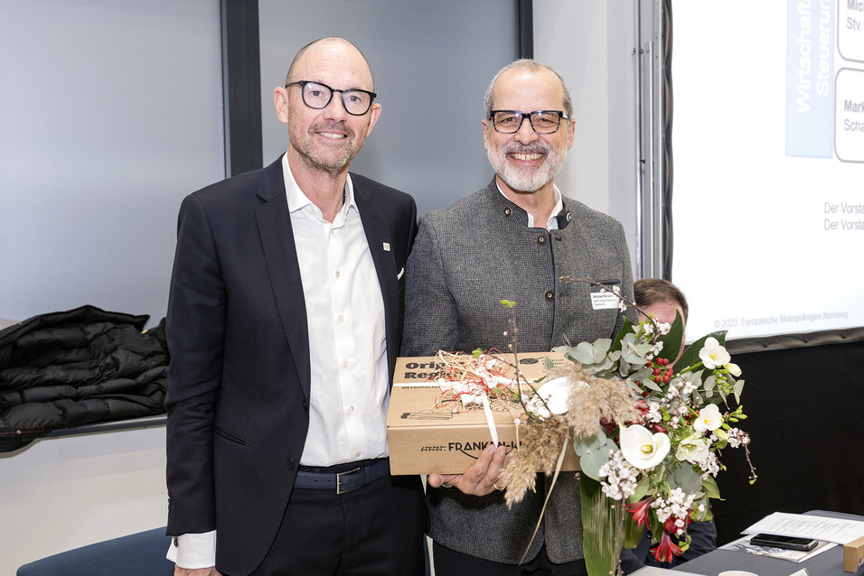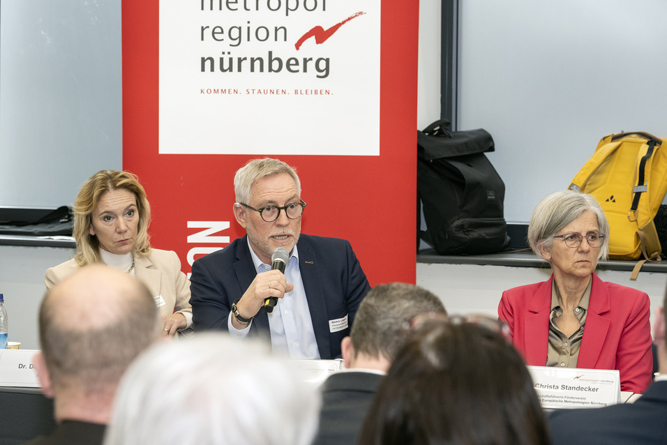 Bei der Mitgliederversammlung auf dem MAN-Gelände wurden fünf neue Leuchtturm-Partner der Metropolregion begrüßt: Im Förderverein engagieren sich nun, die Designfunktion, FAI, SpVgg Greuther Fürth, die Moritz Fürst Gruppe, die Nürnberger Arena, Schaeffler und Werk B. Im Vorstand des Fördervereins gab es einen Wechsel: Für Michael Sigmund, der in Ruhestand gegangen ist, kam Oliver Hartmann ins Amt, der ihm auch bei Siemens als Leiter des Regionalreferats Erlangen-Nürnberg nachfolgt. Die weiteren Vorstandsmitglieder wurden für weitere drei Jahre wiedergewählt: Prof. Klaus Wübbenhorst als Vorsitzender und Johann Bögl (Gesellschafter und Aufsichtsratsvorsitzender Max Bögl GmbH), Dr. Daniela Hüttinger (Geschäftsführerin Hotel Drei Raben) sowie Christian Sendelbeck (Vizepräsident der HWK Mittelfranken). Markus Lötzsch (Hauptgeschäftsführer der Industrie- und Handelskammer Nürnberg für Mittelfranken) war bereits im Vorjahr zum Schriftführer und Schatzmeister gewählt worden.