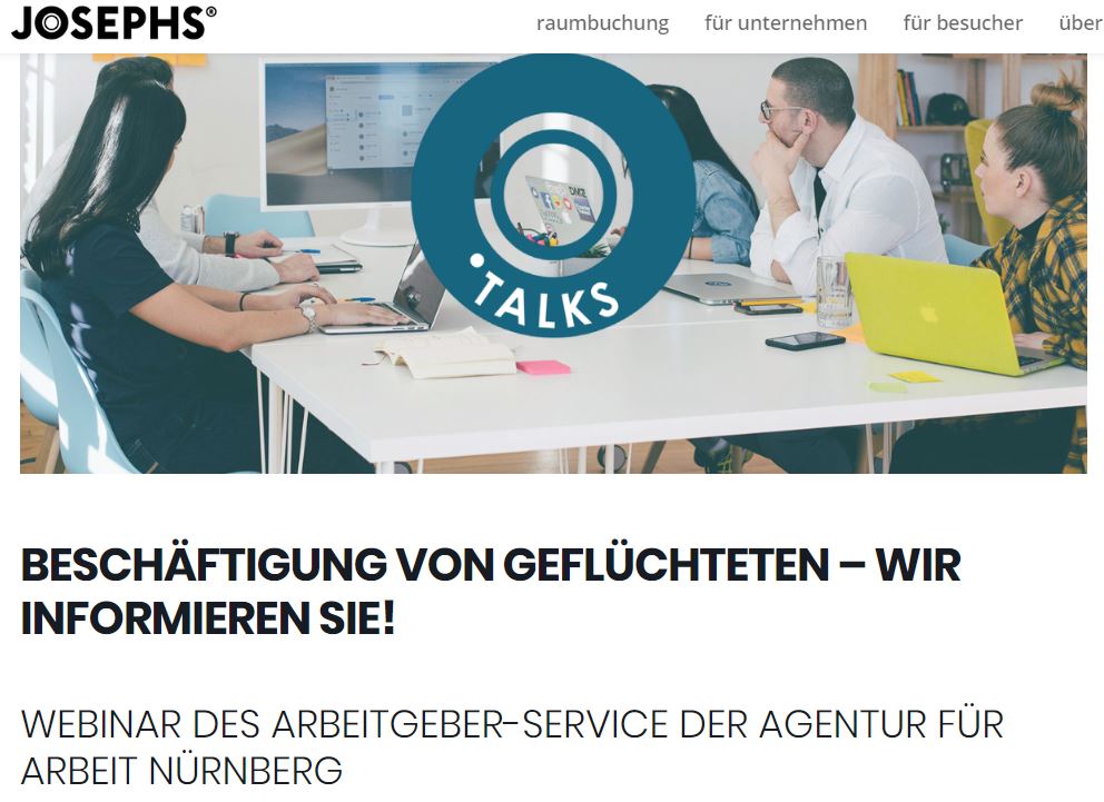 Der Arbeitgeber-Service der Agentur für Arbeit Nürnberg gibt am 15. Juni in einer Online-Veranstaltung im JOESPHS in Nürnberg Informationen zum Thema Beschäftigung von Geflüchteten.