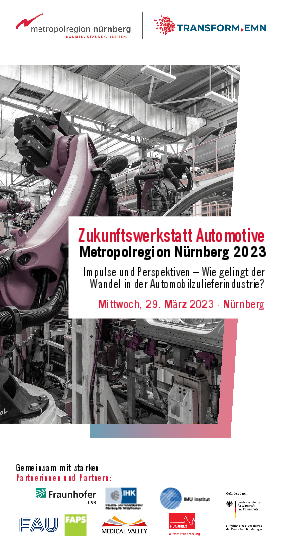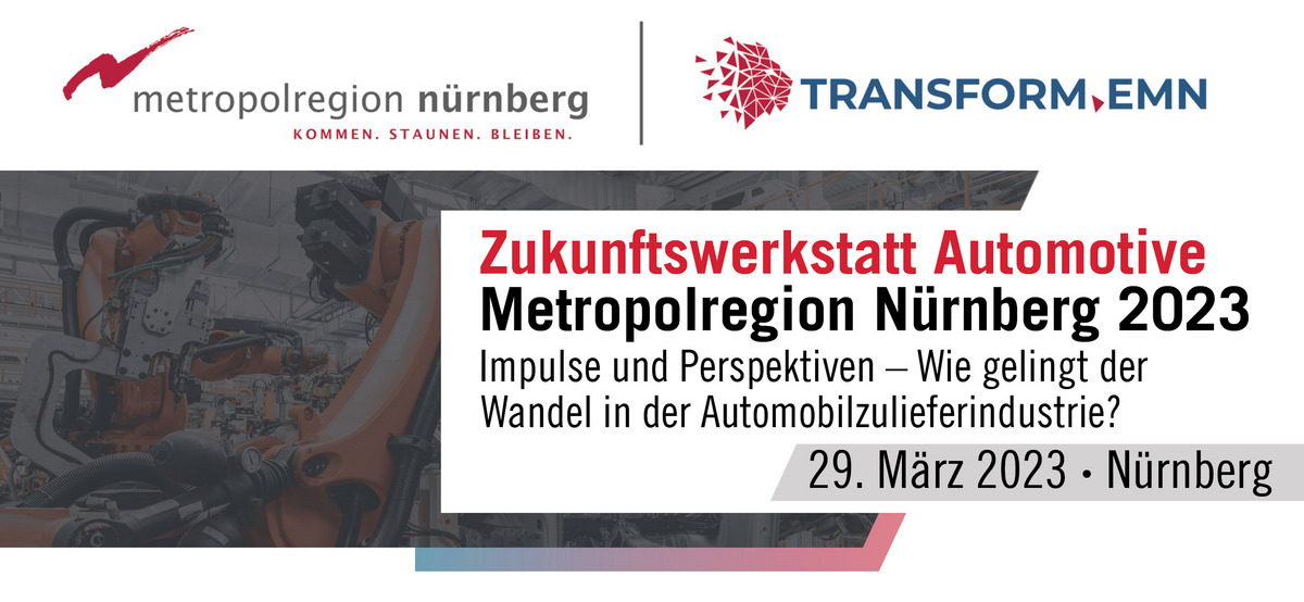Die Zukunftswerkstatt Automotive Metropolregion Nürnberg 2023 ist der Auftakt einer jährlichen Veranstaltungsreihe des Projekts transform_EMN. Das regionale Transformationsnetzwerk unterstützt Automobilzuliefererunternehmen dabei, sich in der Mobilitätswende wettbewerbsfähig aufzustellen. Weitere Informationen zum vom Bundesministerium für Wirtschaft und Klimaschutz geförderten Projekt transform_emn gibt es unter www.transform-emn.de