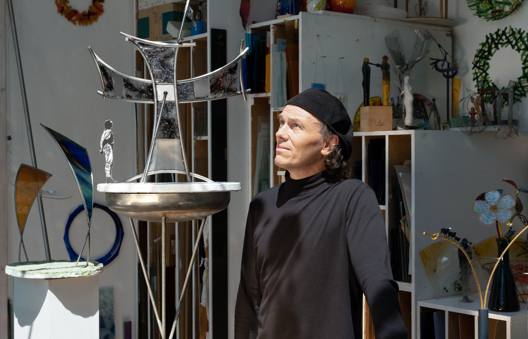 „Mich persönlich reizt die Vielseitigkeit des Glases mit all seinen Widersprüchen und Herausforderungen, die es birgt.“ Die Vielseitigkeit, die ihn reizt verbirgt sich aber in mannigfaltigen Arbeitsgebieten, auf die er sich immer wieder ganz aufs Neue einlässt, gekonnt arrangiert, und die Idee ins „ideelle Licht“ rückt. Dabei ist sowohl sein mathematischer Sinn als auch seine kunstpädagische Ausbildung ein Gewinn für private, kommunale und soziale Auftraggeber.