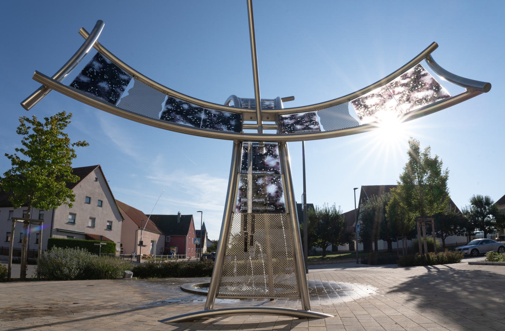 Wenn man ihn fragt wie viel Kunst den von ihm öffentlich zu sehen sei, verwundert einen die Antwort „30 bestimmt“ von Klaus-LEO Drechsel kaum. Eines seiner imposantesten Kunstwerke im öffentlichen Raum ist die begehbare Sonnenuhr „das Sternentor“ auf dem Kunstweg in Rednitzhembach seit 2000. Hier findet man auch sein lichtdurchflutetes Atelier, sein Traum, den er 2015 in Rednitzhembach verwirklichte, wunderbar gelegen im Grünen neben einen Bootsverleih.