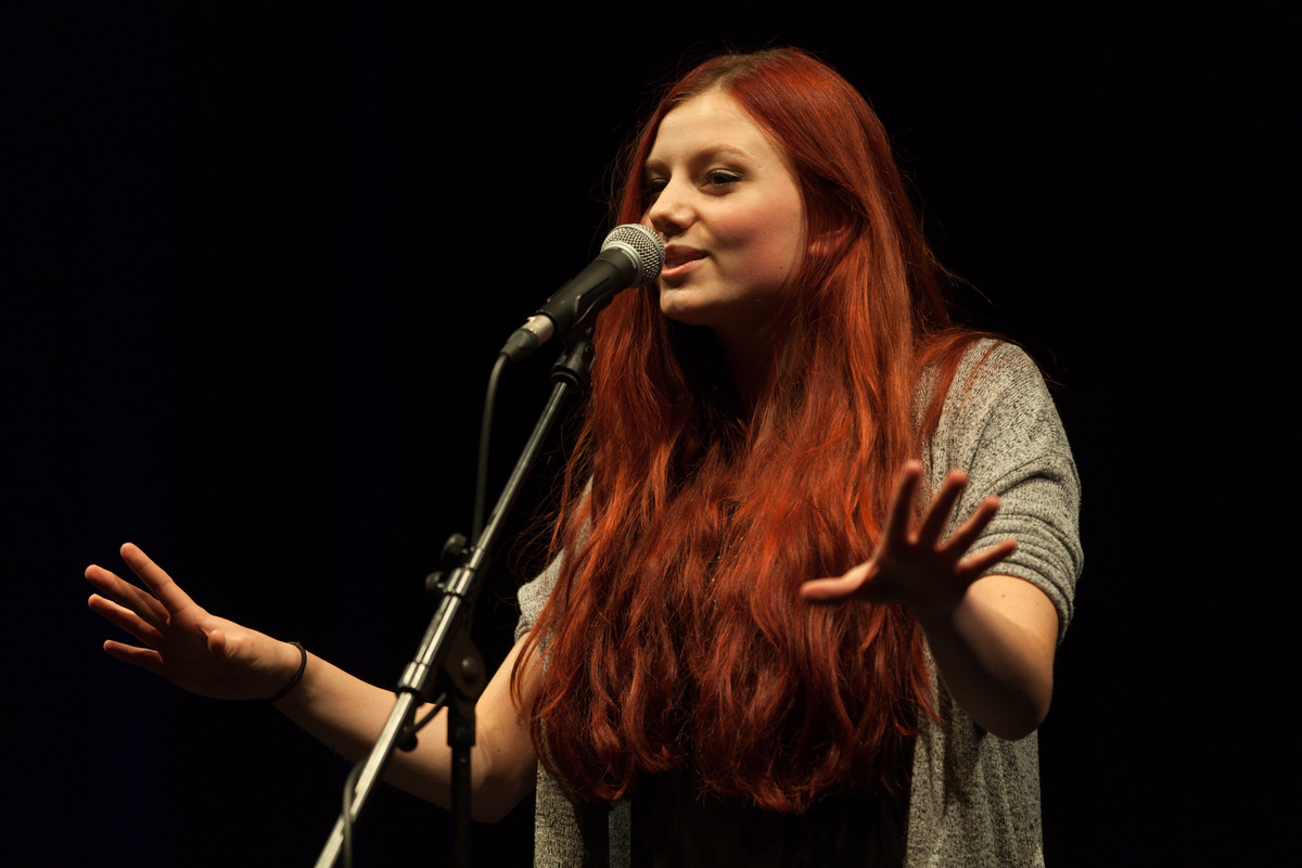 Lara Ermer, 1996 in Fürth geboren, schreibt Texte. Sie ist Poetin. Dort, wo das Papier seine Grenzen findet, sprengt sie mit ihren Auftritten alle Fesseln. Sie flüstert, schreit, zischt und zieht ihr Publikum in den Bann. Zwischen „Poetry Slam“ und „Spoken Word“ entfaltet sich die Wirkung ihrer Texte durch ihre beeindruckende Bühnenpräsenz. Sympathisch und natürlich wie sie ist, werden ihre Auftritte zum Erlebnis. Lara Ermer ist direkt und mutig, sie nimmt kein Blatt vor den Mund und auch nicht in die Hand. Ihre frei vorgetragenen Texte sind persönlich und ehrlich und wohl gerade deshalb in der Lage das Publikum zum Nachdenken zu bewegen. Ihre Themen sind aktuell und gesellschaftlich relevant, wie z.B. ihr Text über das Polizeiaufgabengesetz. Derzeit beschäftigt sie sich viel mit Emanzipation und Feminismus und mit Themen, die man durchaus als unangenehm empfindet und die mit Scham besetzt sind. Im Slamgroove kann man dann locker öffentlich über Menstruation und Sexualität reden. Unaussprechbares kommt heiter daher. Mit Witz und einer besonderen Sprachmelodie bleibt sie nahbar und ist wohl gerade deshalb so gut darin, Jugendliche für das Thema Literatur zu begeistern.