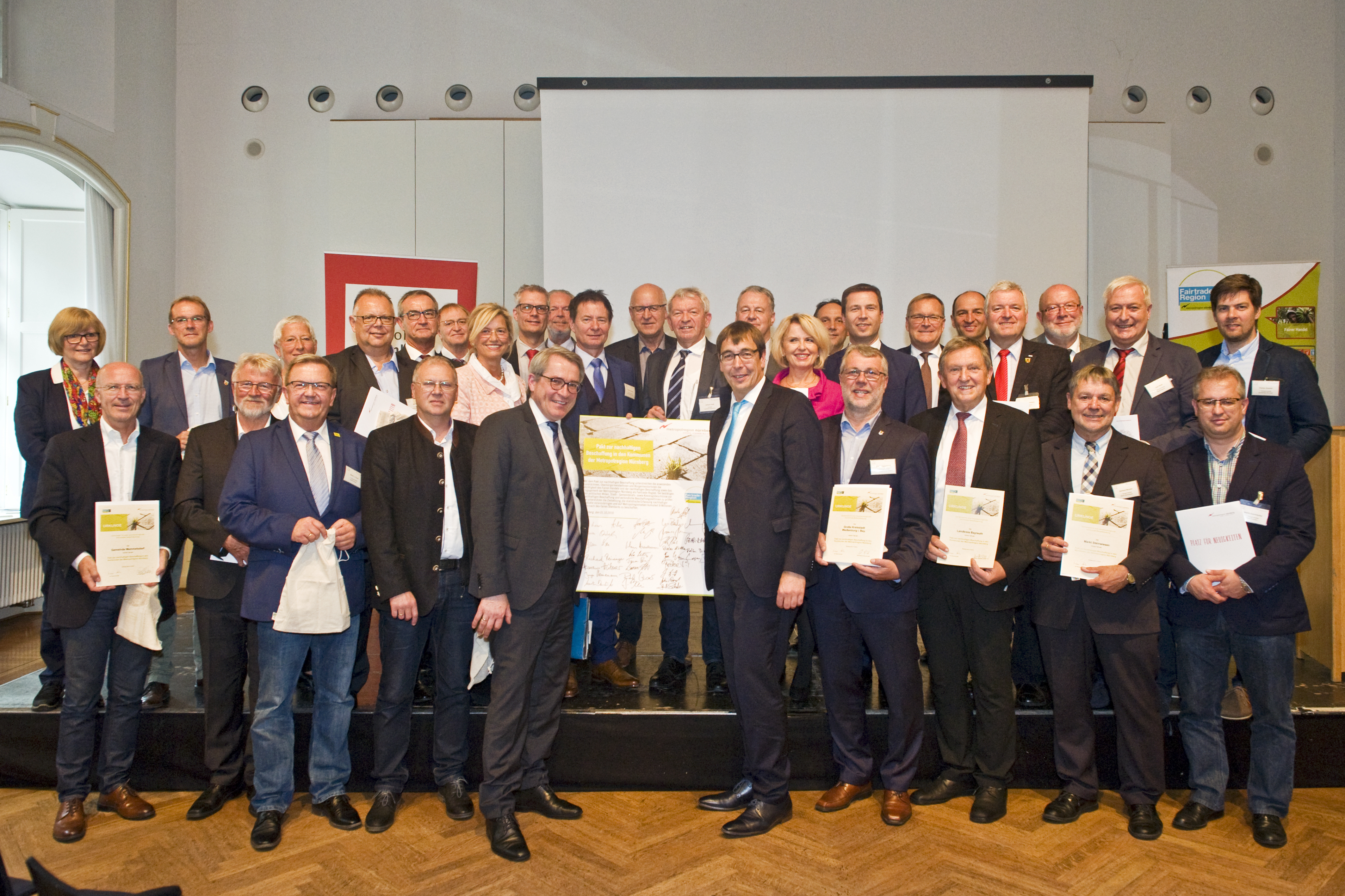 Auftakt des Paktes war der 1. Fair Trade Gipfel im Oktober 2019 in Bamberg, bei dem 37 Kommunen feierlich unterzeichneten. 31 weitere haben sich nun angeschlossen. Foto: Jürgen Schabel