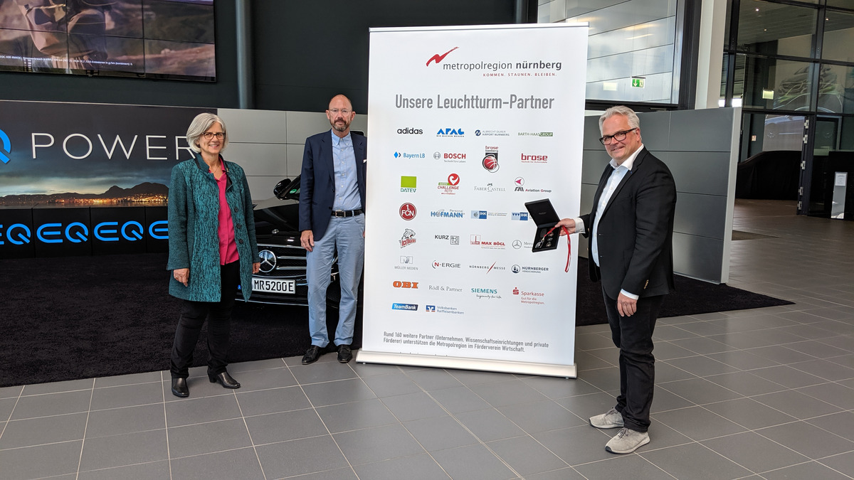 Andreas Rabitz, Niederlassungsleiter Pkw von Mercedes-Benz in Nürnberg, sagt zum Engagement seines Autohauses für die Metropolregion: „Als Erfinder des Automobils wollen wir mit unserem Sponsoring dazu beitragen, das die Mobilität für die Geschäftsstelle der Metropolregion nicht nur sicher ist, sondern durch die Kombination von Elektroantrieb und einem sauberen Dieselmotor eine hervorragende Maßnahme für den Umweltschutz und die Wirtschaftlichkeit eines modernen Fuhrparks darstellt.“ Mercedes-Benz hat elf Standorte im Großraum Nürnberg, eine davon ist die Niederlassung in der Kressengartenstraße.