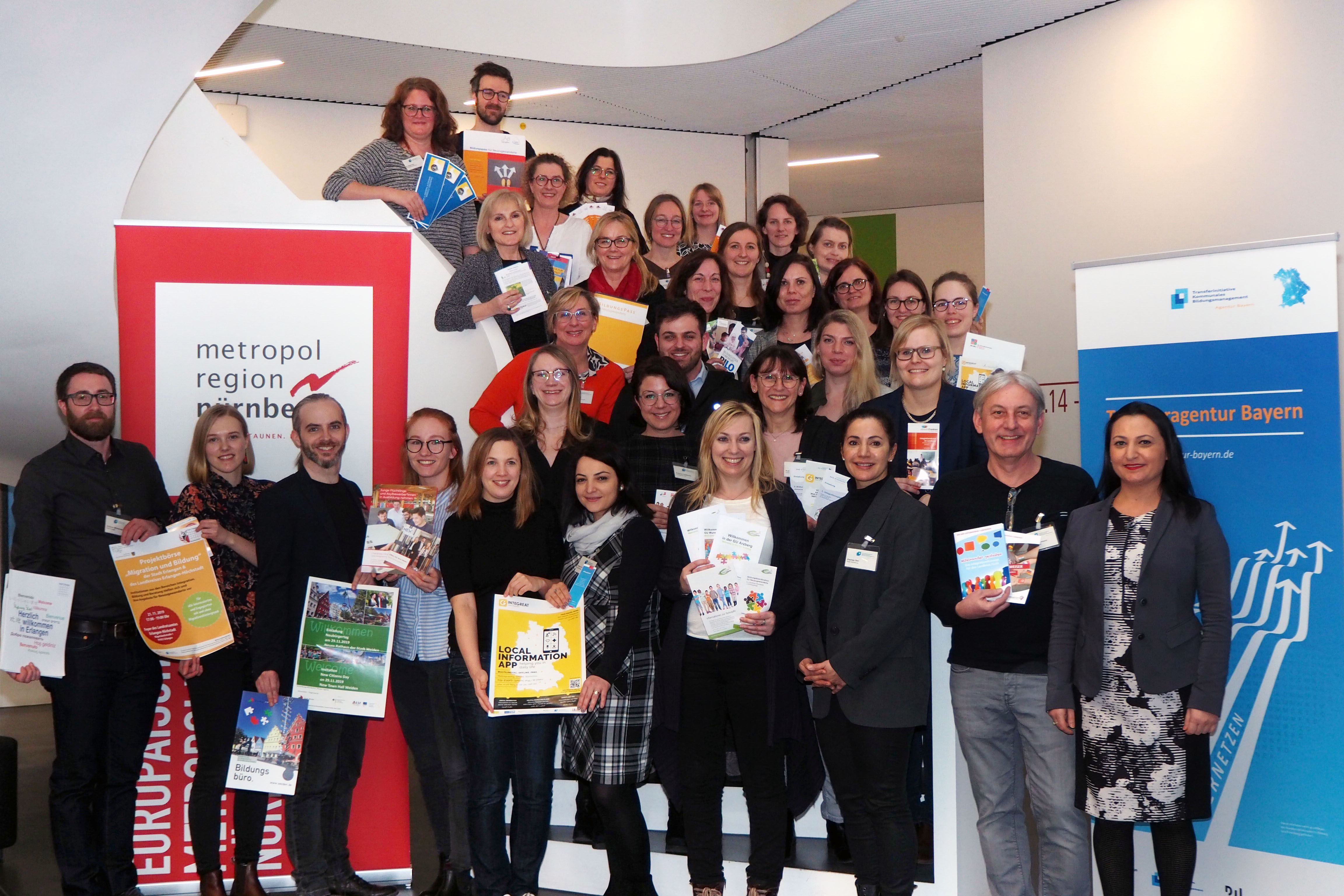 Kurz vor dem Ende des Förderprogramms „Kommunale Koordinierung der Bildungsangebote für Neuzugewanderte“ haben sich 36 Mitarbeiterinnen und Mitarbeiter aus 32 Kommunen der Metropolregion Nürnberg am Dienstag, 11. Februar in Erlangen zu einem gemeinsamen Workshop getroffen und Bilanz gezogen. Nach rund vier Jahren Arbeit steht fest: Vielerorts wurden Strukturen geschaffen, die die Bildungsintegration Neuzugewanderter wesentlich erleichtern, sie effektiv gestalten und so zu einer Erfolgsgeschichte machen.