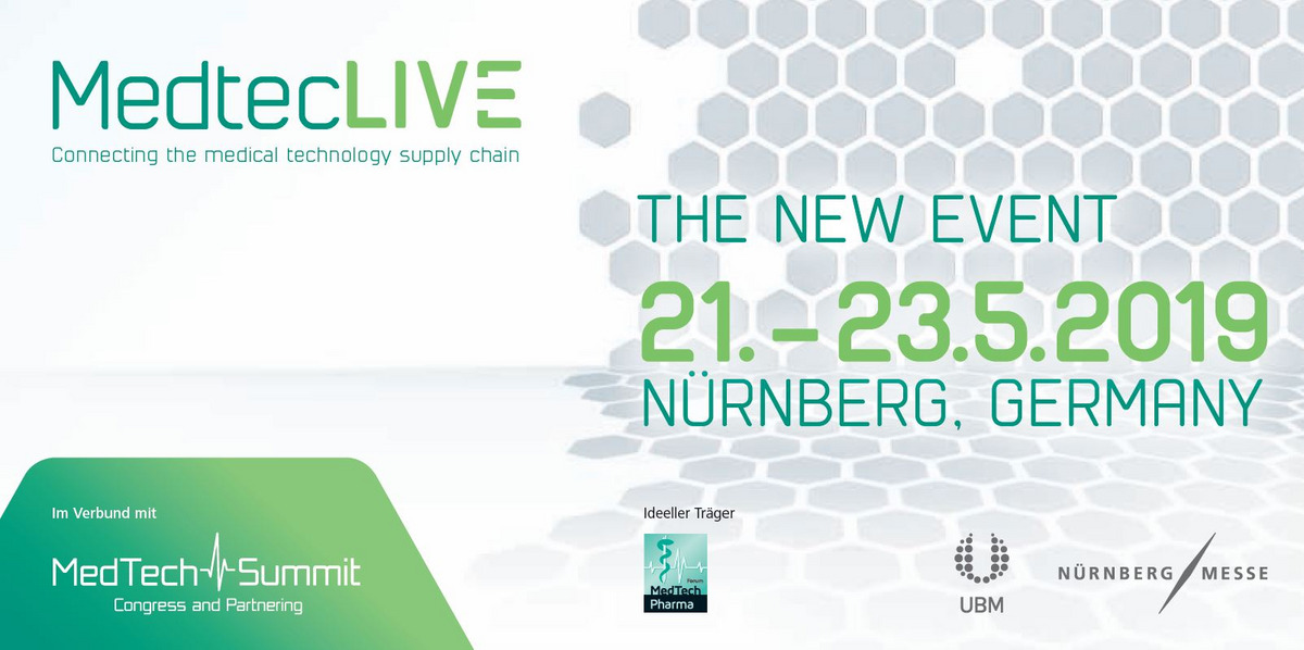 Die MedtecLIVE findet vom 21. bis 23. Mai 2019 im Messezentrum Nürnberg statt.